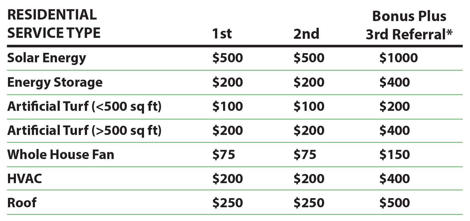 The Bonus Plus program is offered for every third referral (of the same qualified service) provided to US GREEN by one Rewards Member.